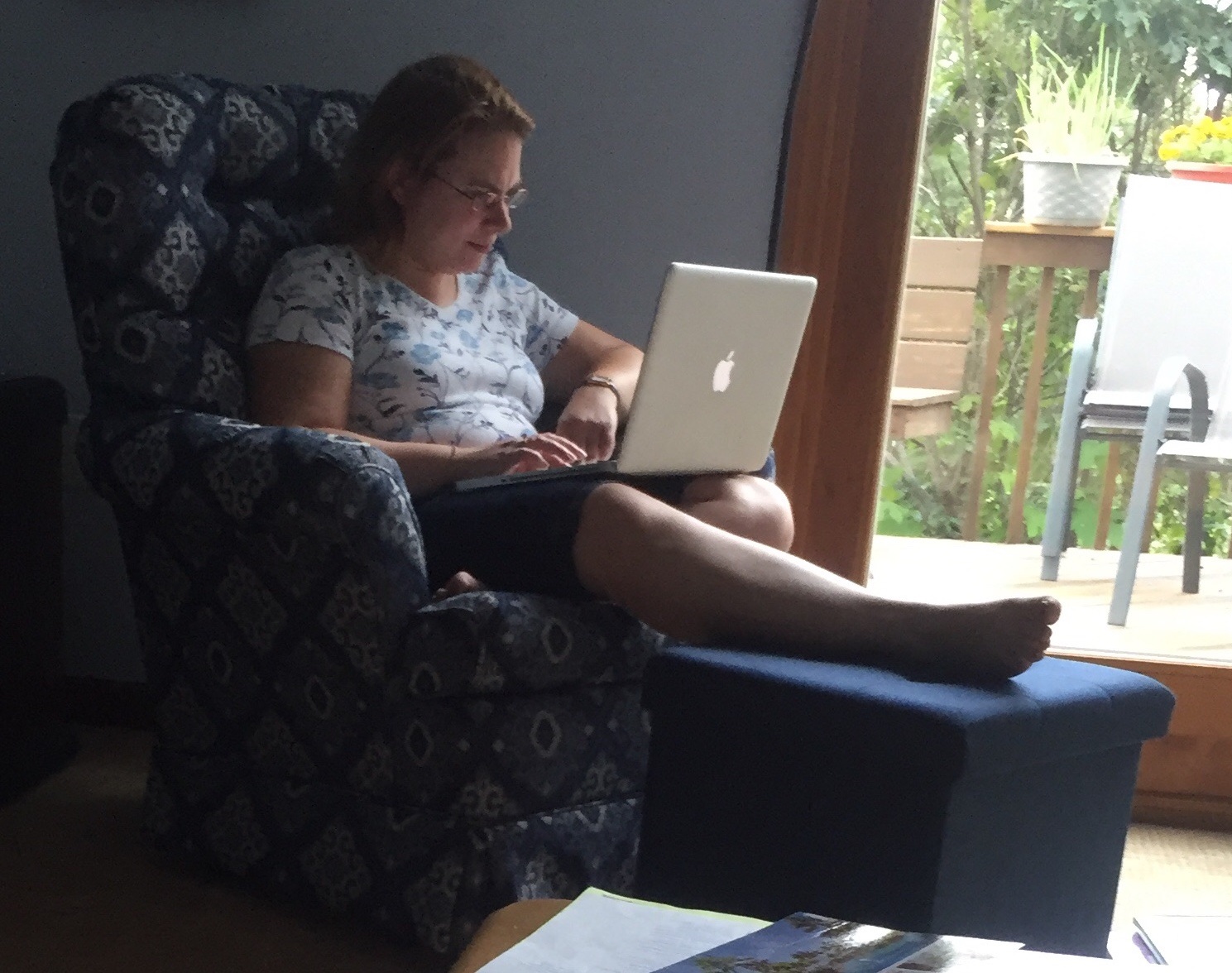 Caitlin secretly took a picture while I worked on updating the blog.